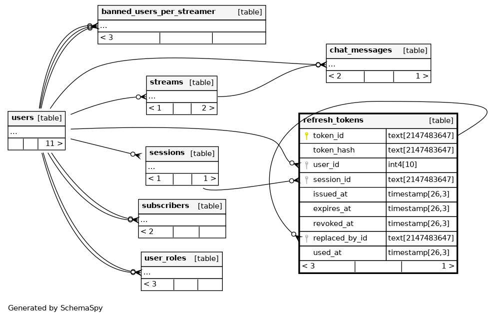 | refresh_tokens_pkey | Primary key | Asc | token_id |