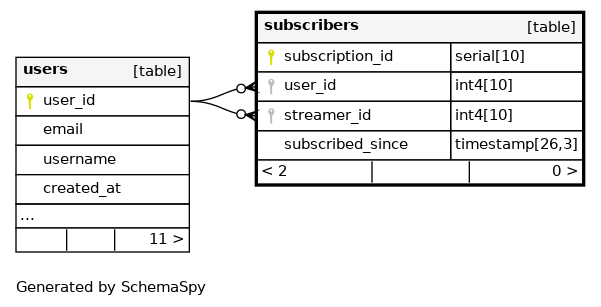 | subscribers_user_id_streamer_id_key | Must be unique | Asc/Asc | user_id + streamer_id |